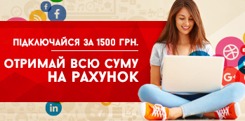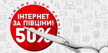 Підключайся лише за 1 грн. та отримай інтернет зі знижкою 50% протягом 12 місяців! Акція діє при стандартному підключенні нової адреси в багатоквартирних будинках за технологією Ethernet по всій зоні покриття за наявності технічної можливості.