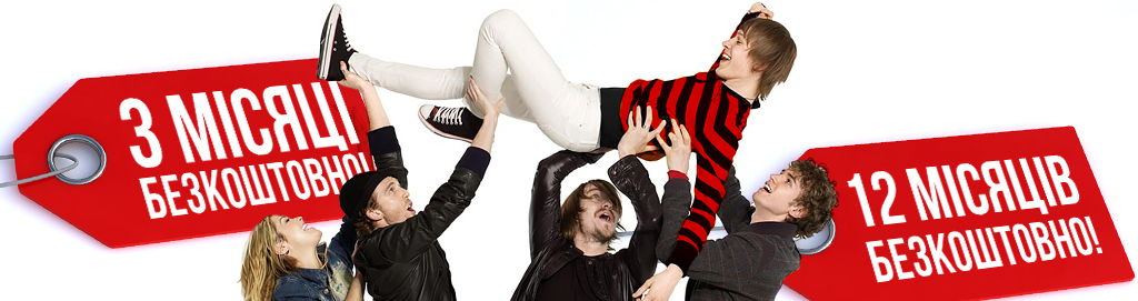 * Період дії акції з 01.05.2015р до 30.06.2015р. включно. В акції беруть участь виключно нові адреси підключення. Пропозиція "12 місяців на двох" дійсна для підключень по технології GePON та не розповсюджується на інші технології. "3 місяці"=90 днів, "6 місяців"=180 днів, під терміном "безкоштовно" мається на увазі можливість користуватись послугою за 0,01 грн. протягом зазначеного періоду. Вартість підключення на сьогодні становить: 1грн. для підключень у багатоквартирних будинках в зоні покриття у м.Красилів; 1500грн. для підключень по технології GePON у м.Красилів та с.Кузьмин.